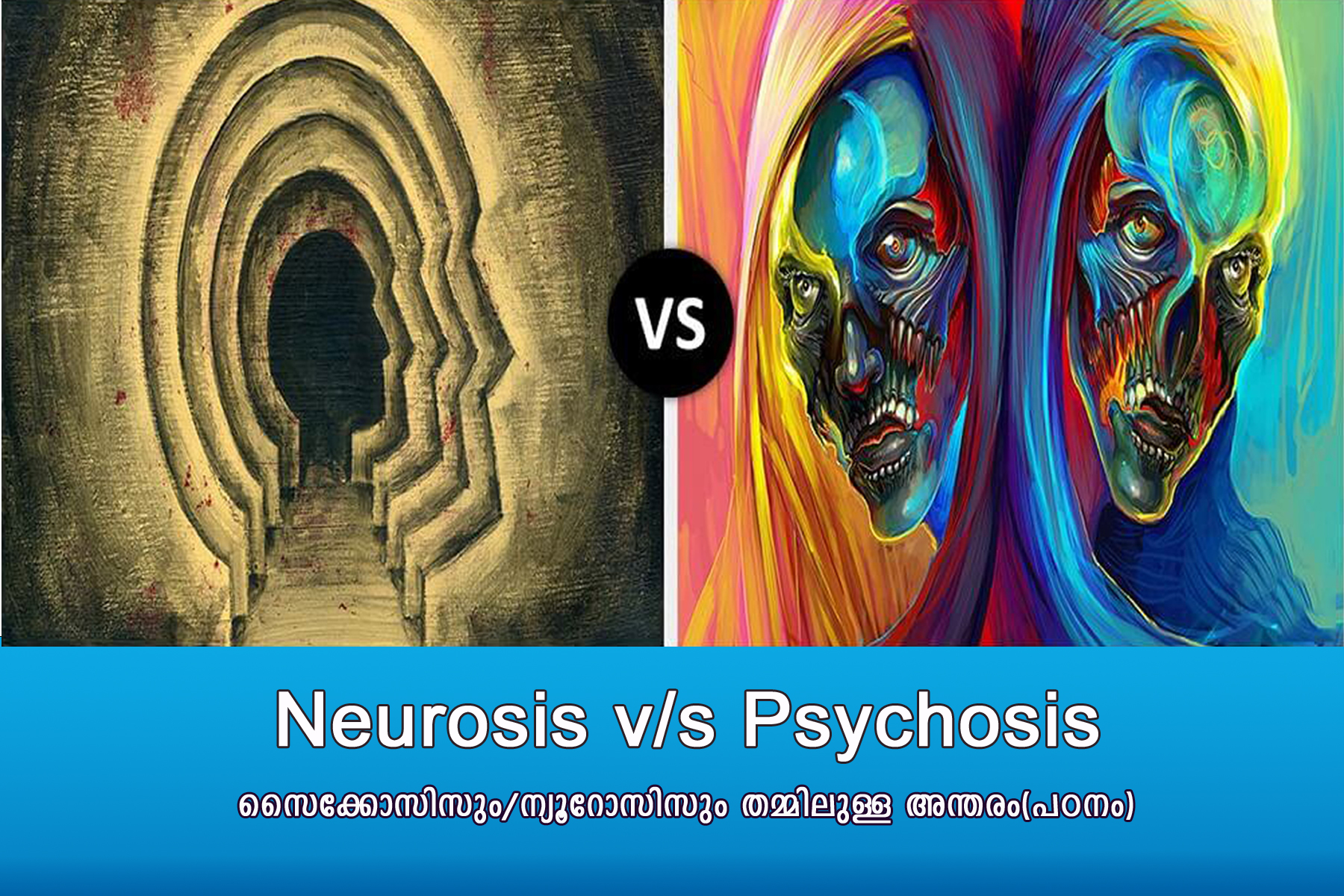 1. ന്യൂറോസിസ്രോഗി തന്റെ രോഗത്തെക്കുറിച്ച് ബോധവാനായിരിക്കും. എന്നാല് സൈക്കോസിസ് രോഗി ഒരിക്കലും താനൊരു രോഗിയാണെന്ന യാഥാര്ത്ഥ്യം അംഗീകരിക്കില്ല.